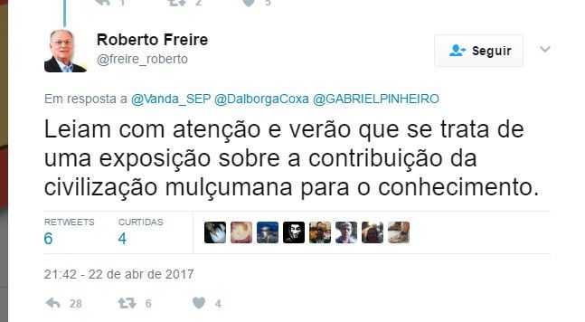 Esta semana, o Ministro da Cultura Roberto Freire fez uma defesa pública da ideia na redes sociais, chamando atenção novamente para o fato de que o governo não vê nada errado em promover, ainda que de forma indireta, a islamização.